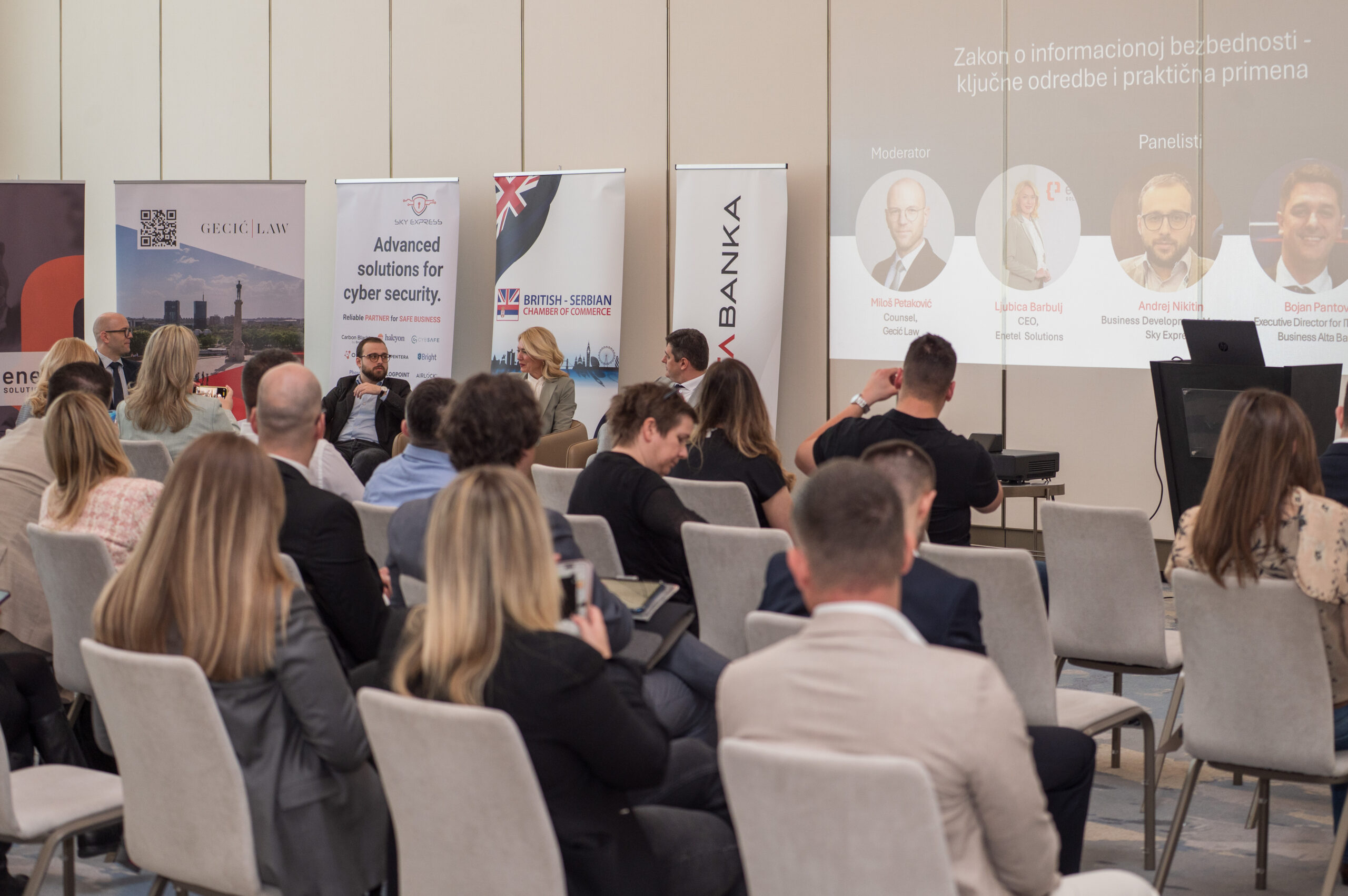 Zadovoljstvo nam je što smo, nakon uspešno realizovanih panela u saradnji sa Nemačko-srpskom i Italijansko-srpskom privrednom komorom, zajedno sa Britansko-srpskom i Švajcarsko-srpskom nastavili seriju stručnih diskusija na temu Zakona o informacionoj bezbednosti.